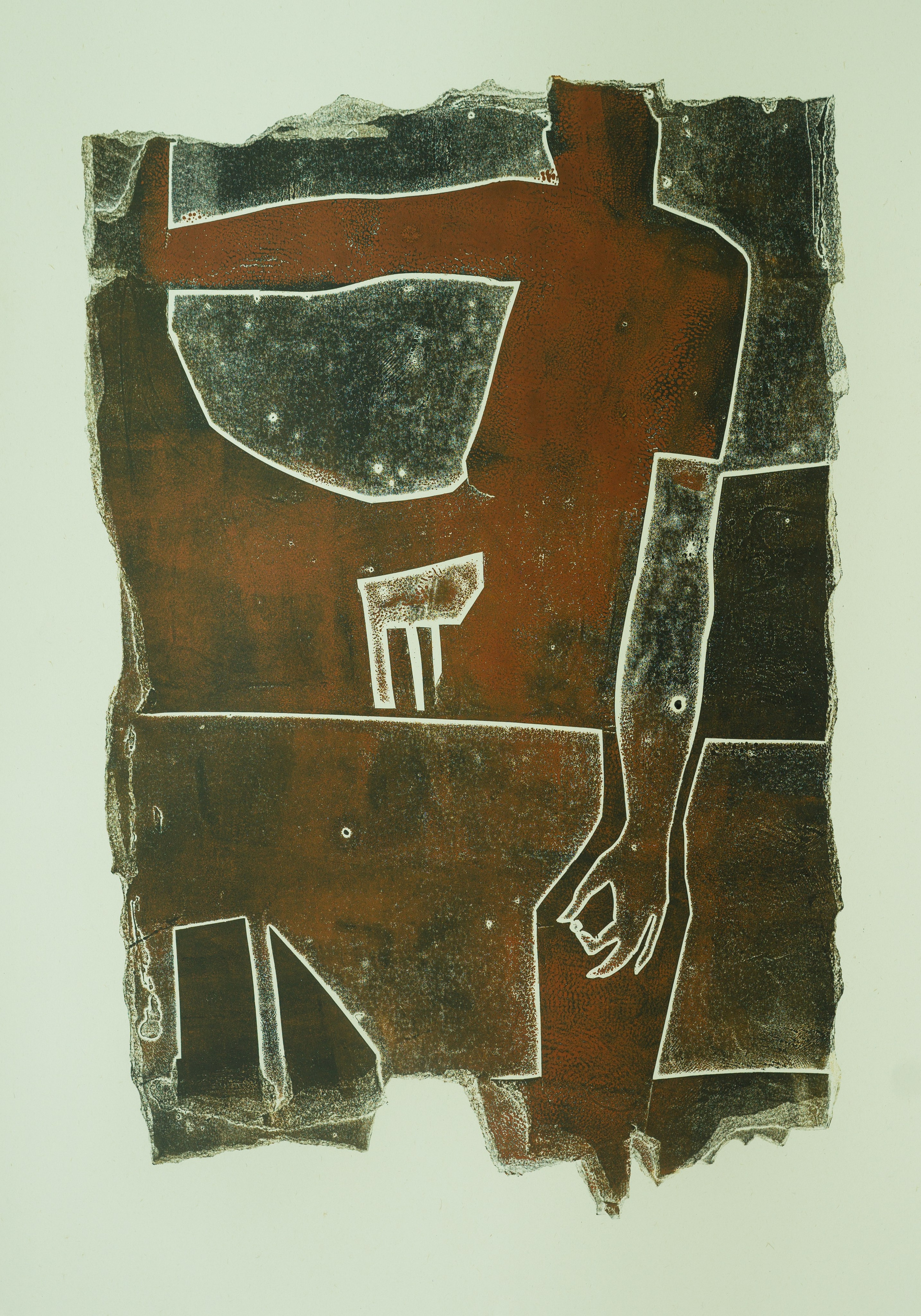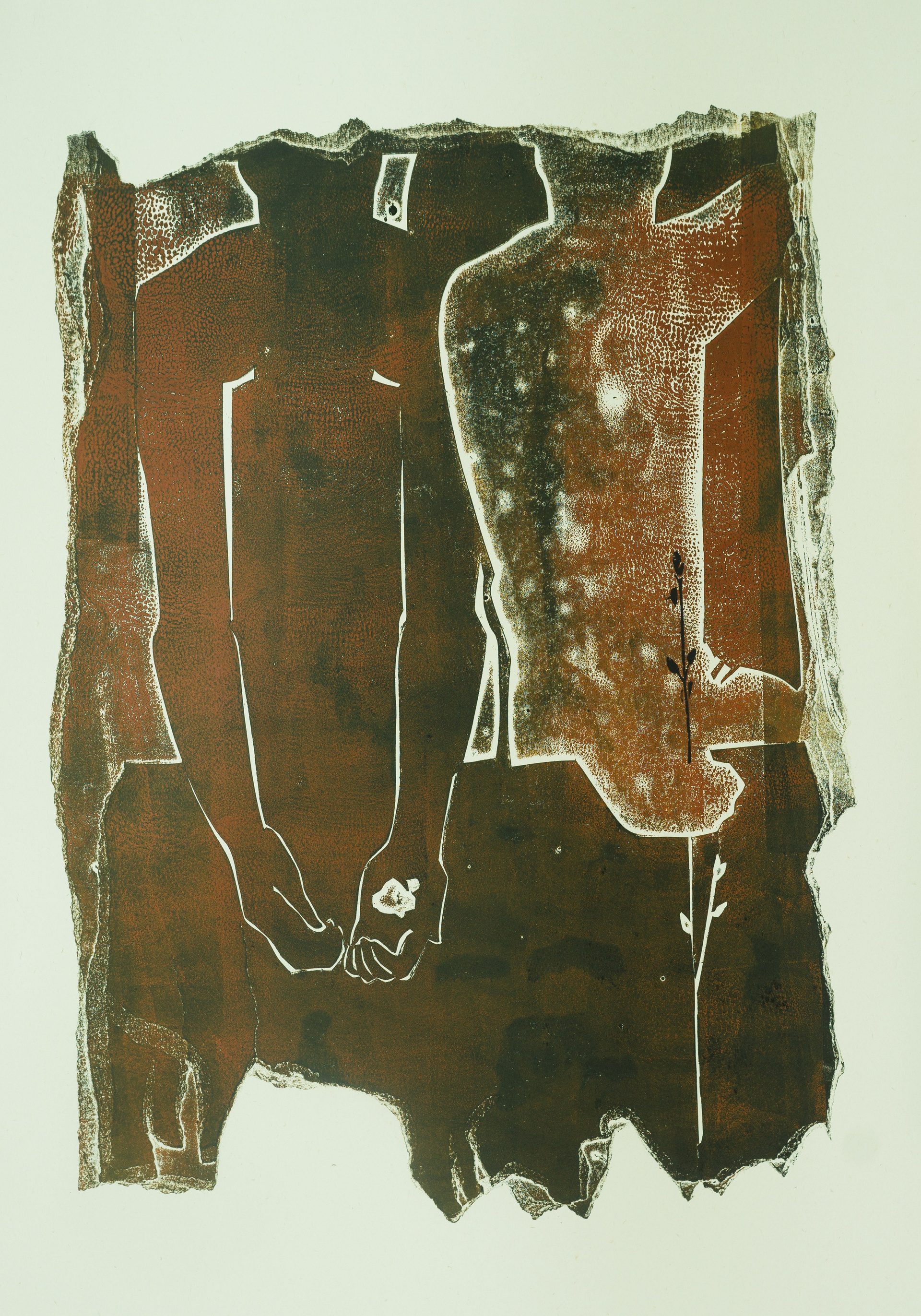 Стол, застолье как пространство единения или его отсутствия становятся ключевыми элементами двух других частей проекта. Инсталляция со шрифтовой графикой «Много, много… ран, много, много… соли» на бесконечной скатерти, не помещающейся на столе, немногословно, но красноречиво раскрывает подтекст авторского послания. Застывшие фигуры в графической серии «Застолье» олицетворяют остановленное мгновение, в котором запечатлелись воспоминания о канувшем счастливом времени, о том, что было дорого и объединяло, и каждый на память сохранил свой амулет — веточку вербы, горсть земли, камушек из реки.
